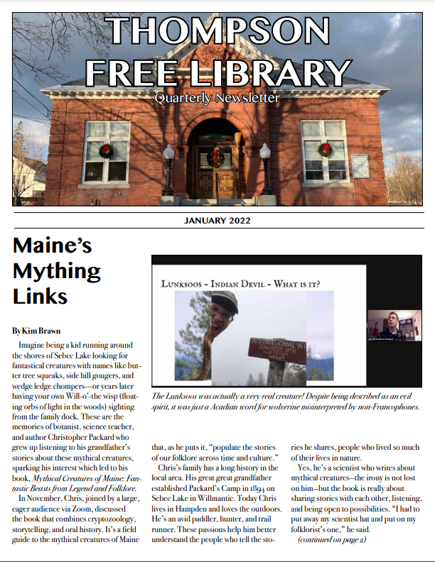 The latest edition of the Thompson Free Library Newsletter is now available. Click here or on the picture below to read it!